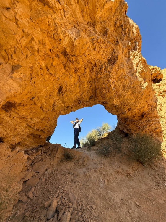 Дальше отправимся в небольшой треккинг по живописной долине Ангелов: пройдя между золотисто-оранжевых скал, мы попадём в тесный каньон, а на обратном пути нас ждёт приятный сюрприз — природный минеральный источник.