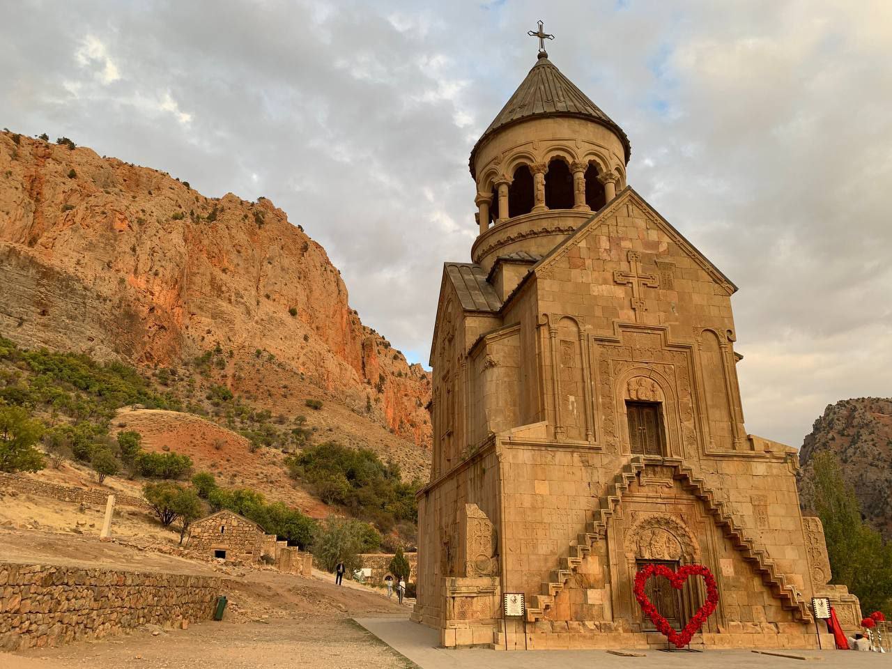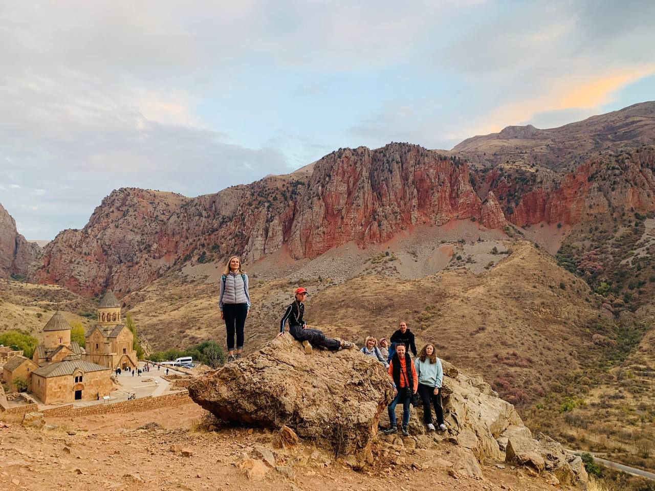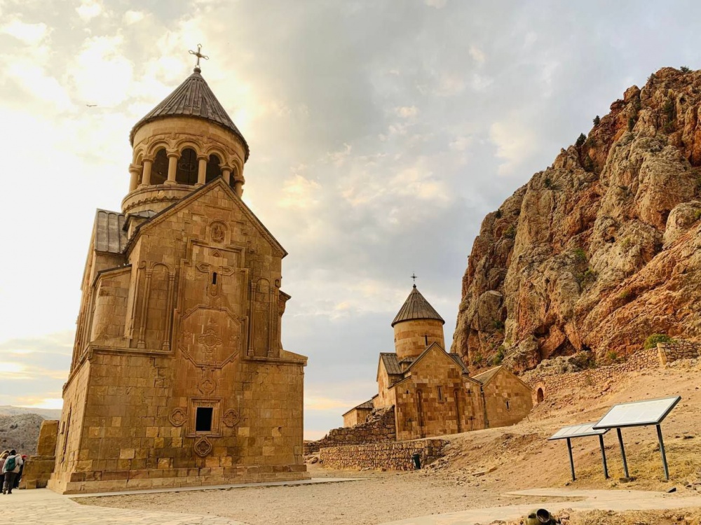 Затем держим путь к монастырю Нораванк XII–XV вв. по дороге, бегущей через скалистое ущелье реки Арпа. Храмы в Нораванке построены из красноватого туфа, а замыкает долину амфитеатр красных скал, их цвет подчёркнут яркой зеленью – невероятно красиво! Прогуляемся на видовую точку и полюбуемся сверху этой захватывающей панорамой.