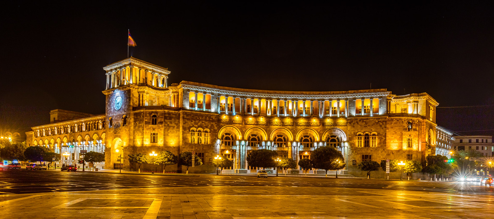 Вернёмся в Ереван и разместимся в гостинице. Прощальный вечер проведём вкусно и красиво, добавим в него немного романтики — прогуляемся по улицам и площадям в вечерней подсветке.