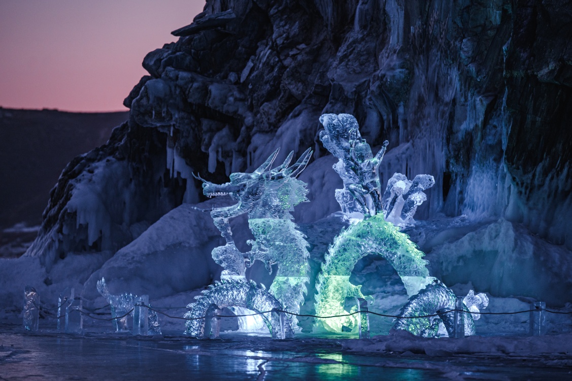 И вишенка на льду – посещение фестиваля ледовой скульптуры Olkhon Ice Fest! Это сотни ледовых статуй от маленьких до огромных и возможность побывать в сказке про волшебников и драконов, притаившихся во льдах самого загадочного озера планеты!