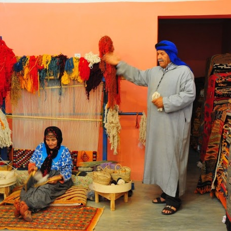 Перелистнув страницу, посвященную пустыне, мы берём курс на юго-запад. Сегодняшний день посвятим традиционным народным промыслам: спустя час после отъезда мы прибудем в небольшую берберскую деревушку, где посетим женский кооператив и посмотрим, как плетутся ковры. Ковры производят из натуральной овечьей и верблюжьей шерсти, а ткут и красят их вручную. При желании можно приобрести понравившийся образец :)