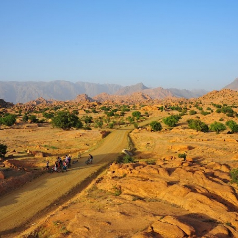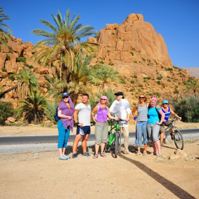 Наша сегодняшняя цель — город Тафраут. В пути проведём несколько часов, но обязательно будем делать остановки на обзорных точках, чтобы любоваться и фотографировать потрясающие панорамы. К обеду доберемся до Тафраута или, как его часто называют, миндальной столицы Марокко. Здесь всем желающим мы предлагаем совершить увлекательную велосипедную прогулку по живописным окрестностям. Самое время размяться! Мы покатаемся на велосипедах за городом, увидим живописные скалы, образованные за счёт выветривания, и посетим находящуюся в трех километрах деревеньку Агуерд-Удад. Она известна скальной формацией, называемой «Наполеонова треуголка», и своими раскрашенными камнями в стиле лэнд-арт — работой бельгийского художника Жана Верана. Нам откроются виды на долину Амельн, окружающую Тафраут.