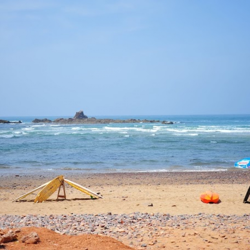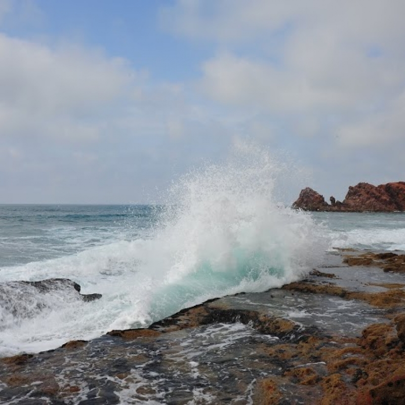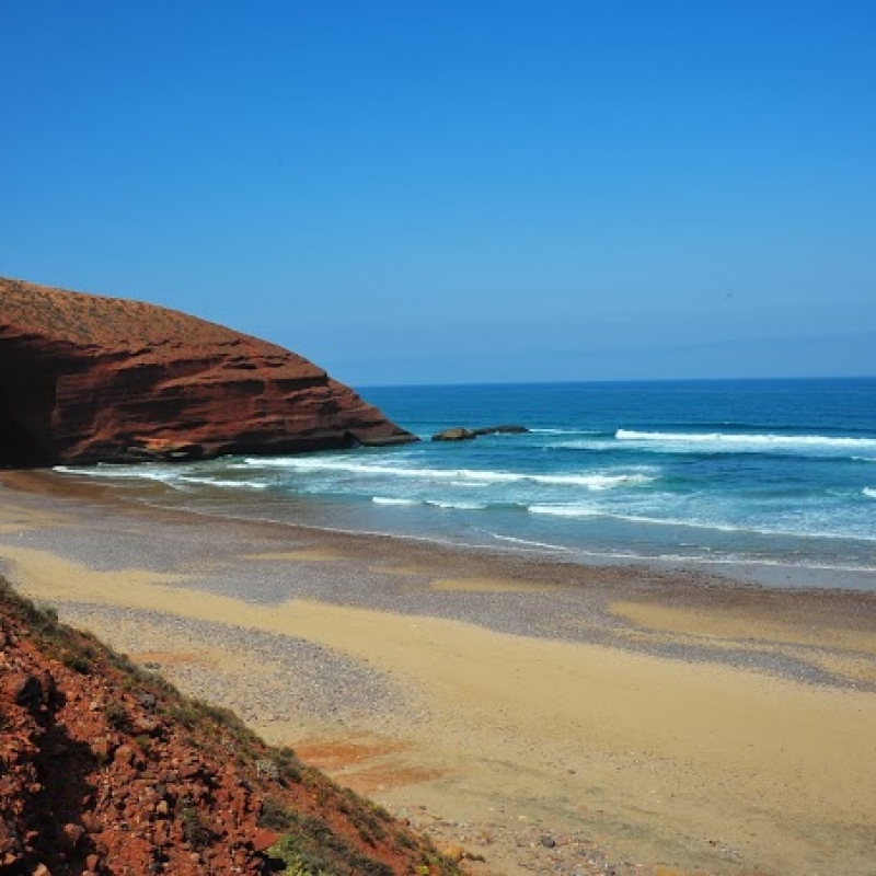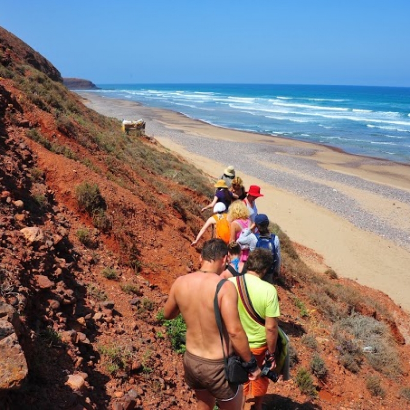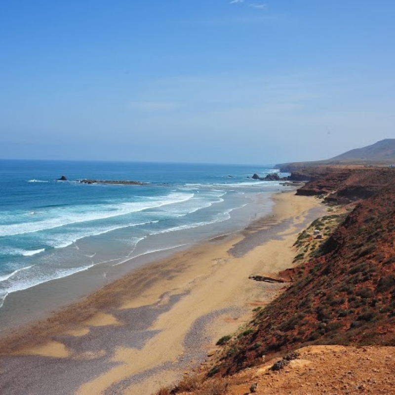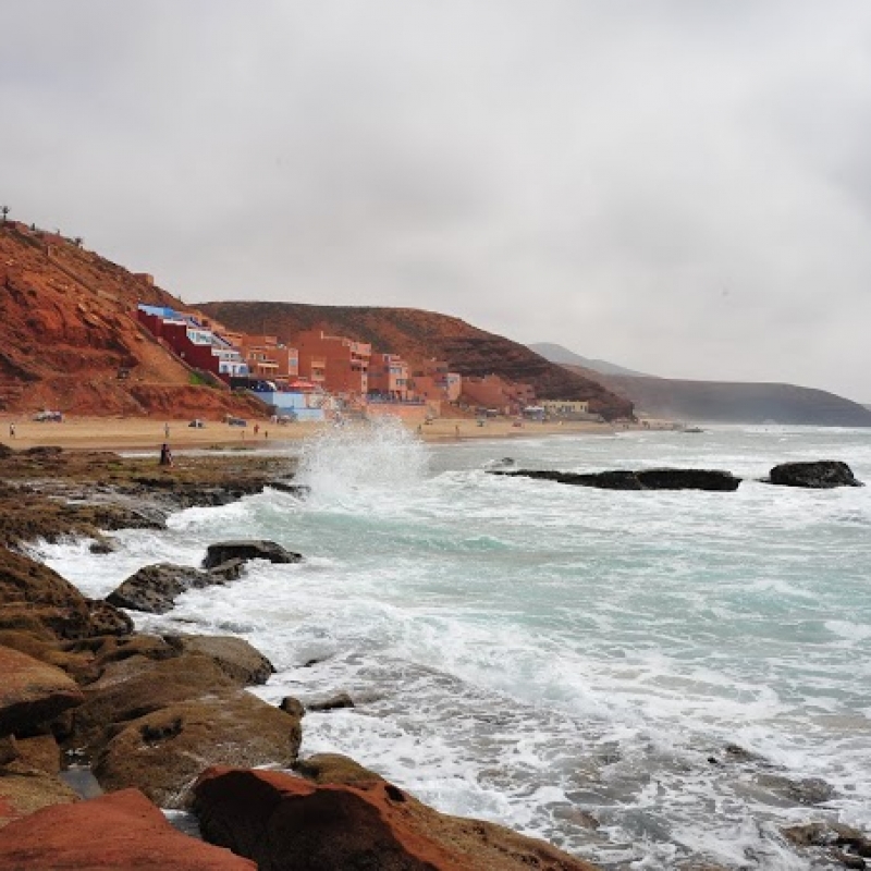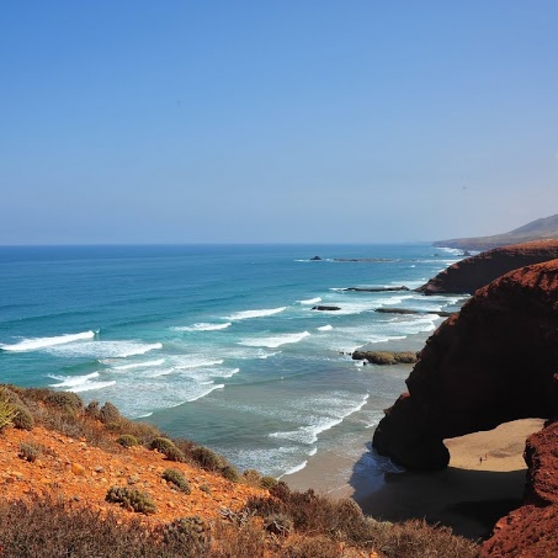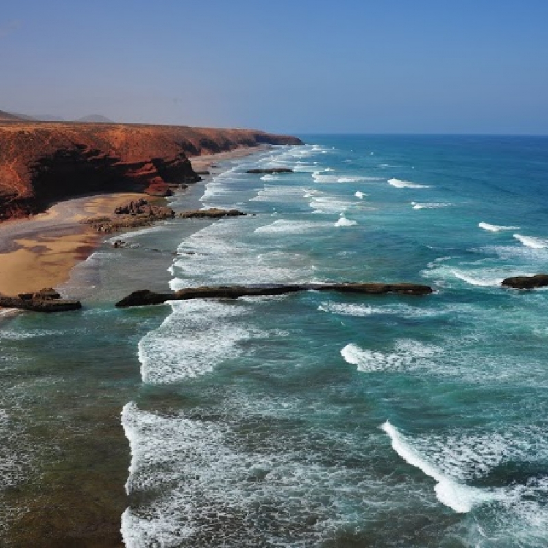 От Тизнита до пляжной провинции Сиди-Ифни около 70 км. Всего час езды отделяет нас от шумного прибоя! Дорога идёт вдоль побережья. И вот мы на месте! Бросив вещи в гостинице, спешим к океану. Погуляем по уютной набережной, подышим свежим бризом, будем отдыхать и наслаждаться безбрежными океанскими просторами после засушливой пустыни. Разве это не рай? :)
