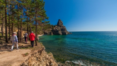 Сегодня на скоростном катере мы отправимся в бухту Песчаная. Это одно из самых известных и живописных мест на озере Байкал. За бухтой закрепилось название Байкальская Ривьера, и она объявлена памятником природы. Пройдём вдоль берега, увидим бухту Песчаная, скалу Бабушка и Большую Колокольню, а также знаменитые ходульные деревья, которые будто парят над землёй. По желанию можно подняться на скалу Обозрения — с вершины открывается вид на Байкал, но понадобится удобная обувь.