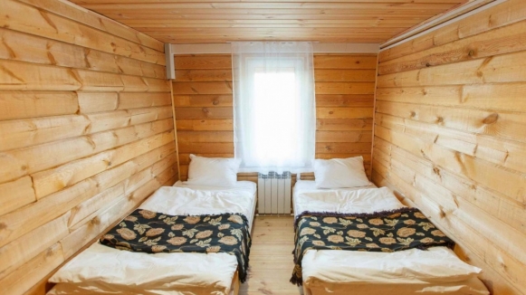 Стандартное размещение в пос. Зюраткуль – семейные номера с двумя комнатами, в одной комнате двуспальная кровать, в другой – две односпальные. Санузел общий на две комнаты. Одноместное и двухместное размещение в отдельном номере с удобствами – за доп.плату.