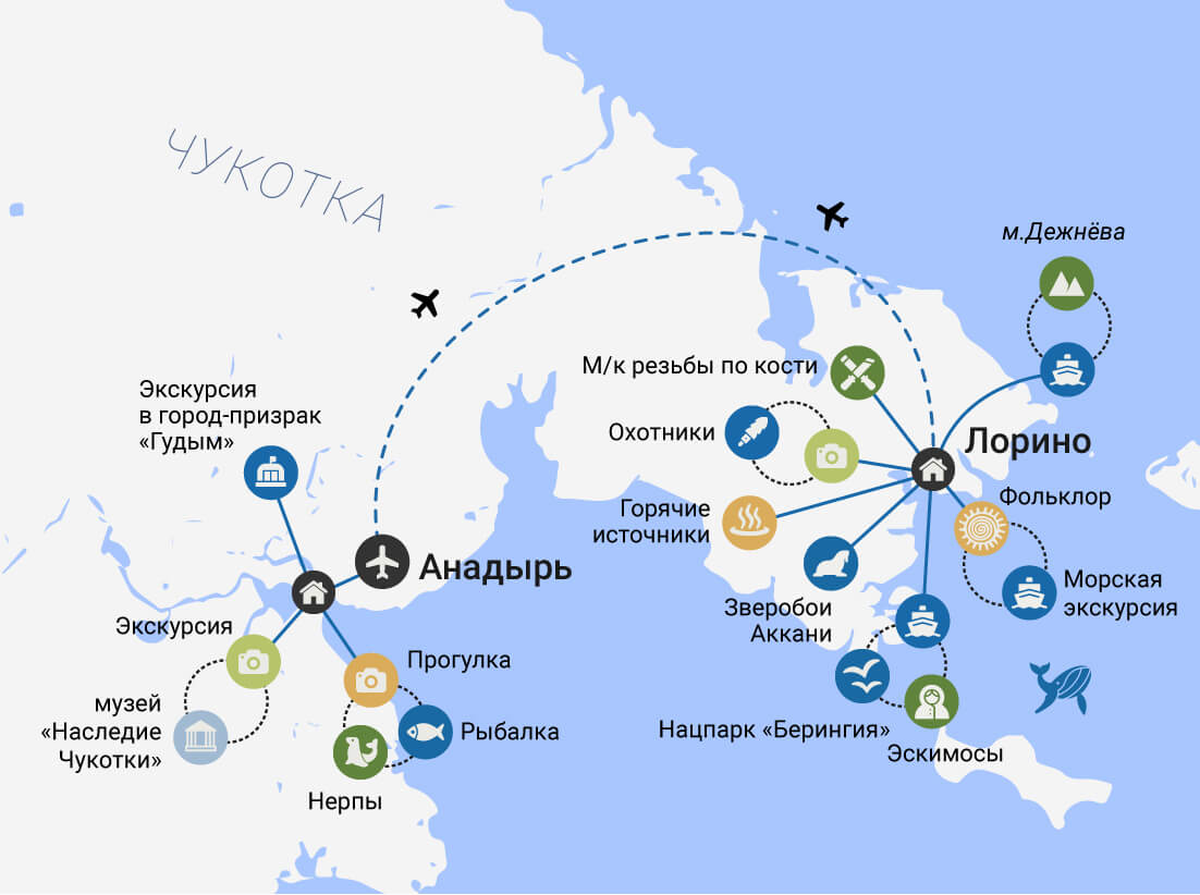 Рекомендуем всем участникам улетать в день окончания программы, т.к. аэропорт находится далеко от Анадыря, самолёты летают редко, на их расписание влияют погодные условия, а также есть сложности с бронированием гостиницы. Если вы всё же хотите остаться в Анадыре подольше, свяжитесь, пожалуйста, с нашим менеджером для решения этого вопроса.