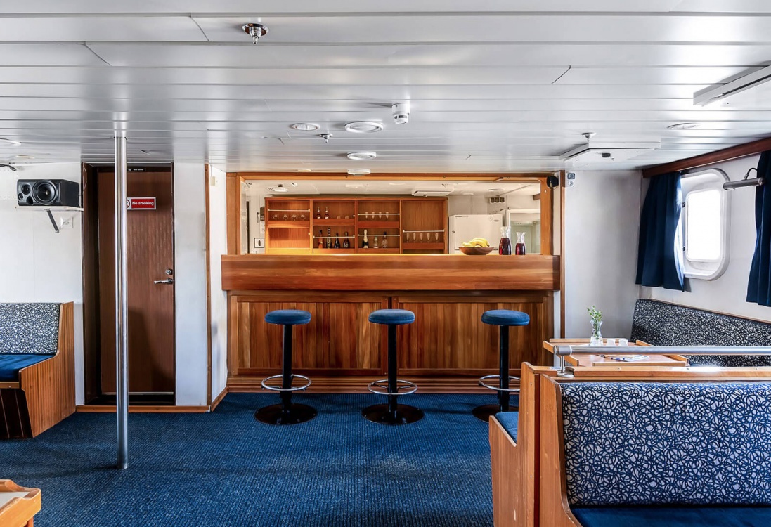 Для удобства пассажиров на борту несколько классов кают, два ресторана, бар, сауна, кинозал, кают-компания с библиотекой, конференц-зал. Капитанский мостик открыт для пассажиров в любое время суток.