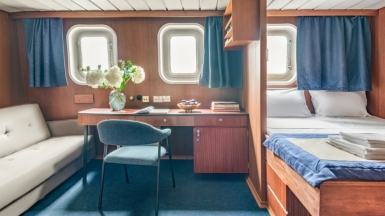 В Национальный парк «Командорские острова» вы отправитесь на экспедиционном судне ледового класса «Академик Шокальский», специально оборудованном для путешествий в сложных условиях. Круиз пройдёт с комфортом: на корабле есть несколько классов кают, рестораны, бар, сауна, библиотека и кинозал — всё для того, чтобы не заскучать во время морских переходов.