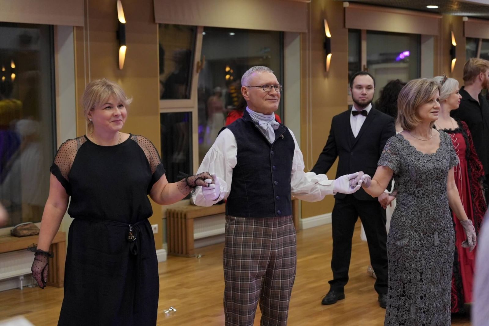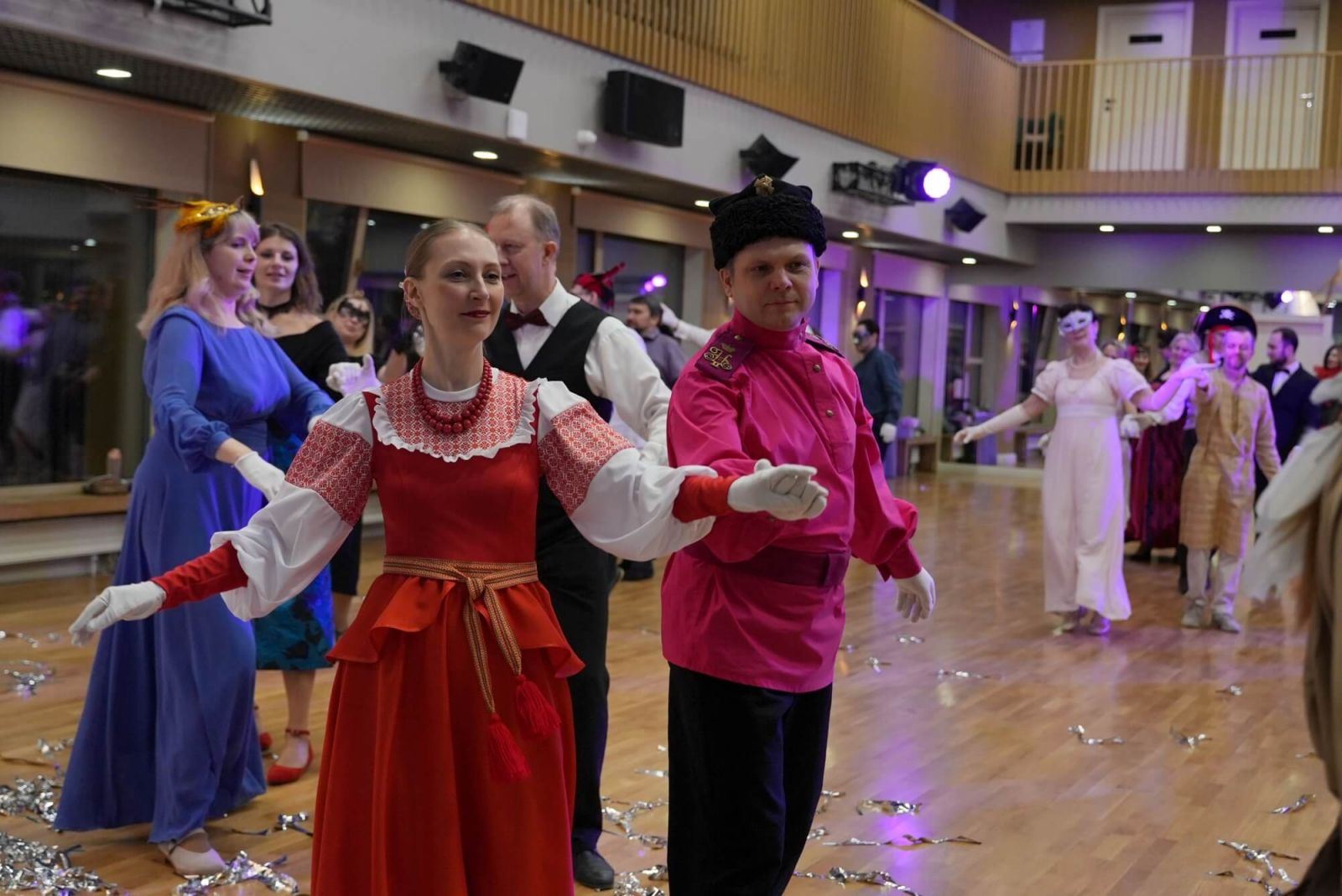 В этом году к нашей доброй традиции присоединилось 75 человек, среди которых были и участники предыдущих балов. Поэтому в программу включили как уже знакомые и любимые танцы, такие как берлинская полька, сельский рил и московская кадриль, так и новые: джига лорда Карнарвона, шотландский контрданс и танец конькобежцев. А руководила танцевальной феерией преподаватель исторических танцев Наталья Власова. «Я очень рада, что старинные танцы нашли такой отклик в сердцах наших Странников. Мне было приятно, что гости помнят танцы и даже интересуются, будет ли в сегодняшней программе определенный танец, – говорит Наталья. – Надеюсь, что этот шумный, весёлый, нарядный вихрь будет поддерживать нас и вернется в следующем году!».