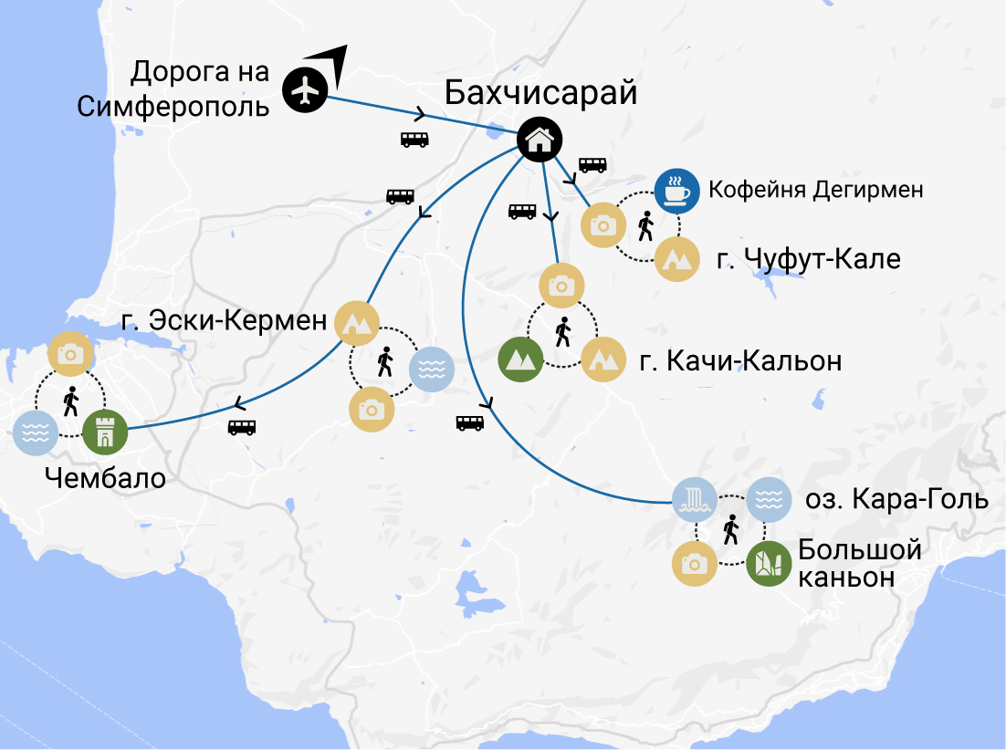 Крым прекрасен в любое время года: яркие краски природы, причудливые формы скал, множество тайн древности, богатая история культуры, вкусная еда, радушная атмосфера — всё это мы объединили в нашем путешествии «Тайны древнего Крыма»! Оно создано для тех, кто хочет отдохнуть от суеты, окунуться в мир природы, но при этом не готов или НЕ ХОЧЕТ идти в поход и ЖИТЬ В ПАЛАТКЕ.
