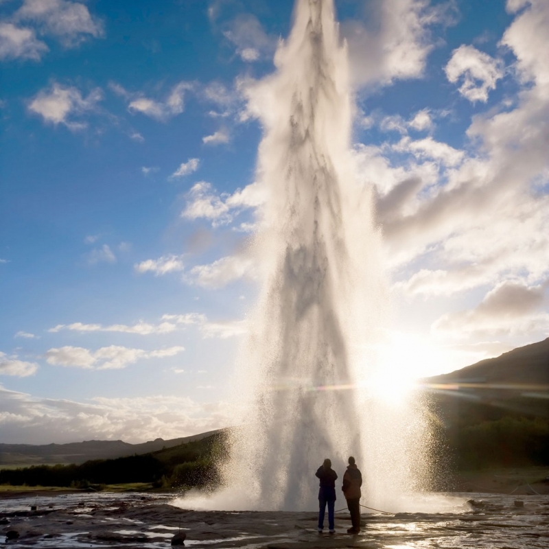 Затем отправимся к величественному водопаду Гюльфосс и Великому гейзеру, давшему название всем остальным горячим источникам планеты. Однако сейчас Великий гейзер спит, зато рядом есть другой горячий источник Строккур, который бьёт на высоту около 20 метров приблизительно раз в 10 минут.