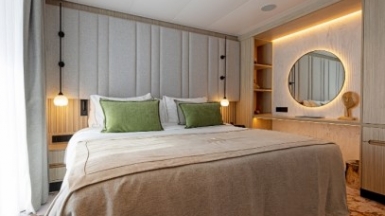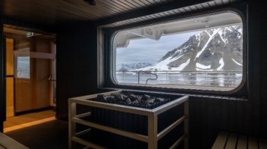 Будете жить в просторных уютных каютах с панорамными окнами и дизайнерской мебелью. Между экскурсиями сможете отдыхать на борту в открытом подогреваемом бассейне или в сауне, откуда можно следить за северными панорамами.
