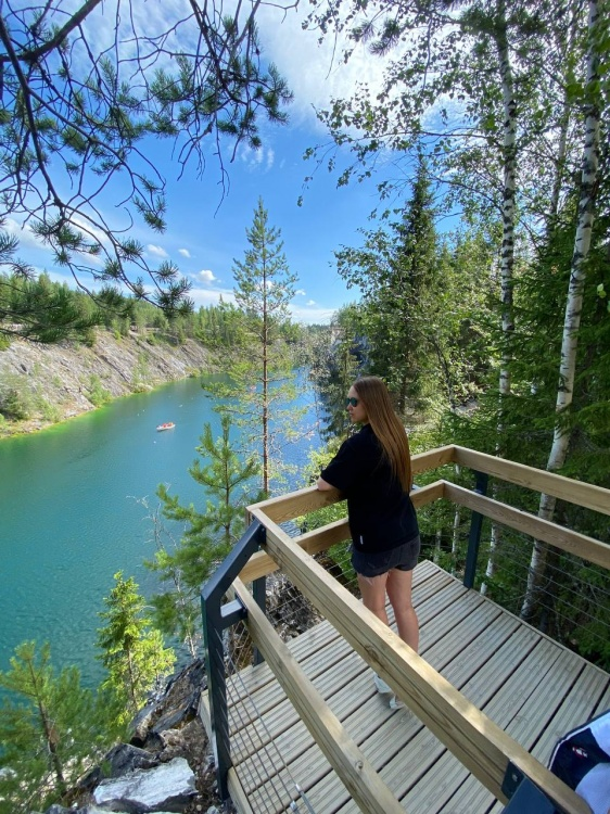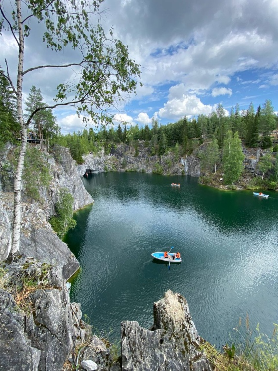 После обеда в кафе — переезд в Сортавалу, а оттуда — в горный парк «Рускеала». Парк знаменит своими мраморными карьерами: добытый камень использовался для строительства Исаакиевского собора, Эрмитажа и некоторых станций метро Санкт-Петербурга. С высоты вы увидите подземное озеро, к которому можно спуститься, прогуляетесь по каменистым тропам карьера.