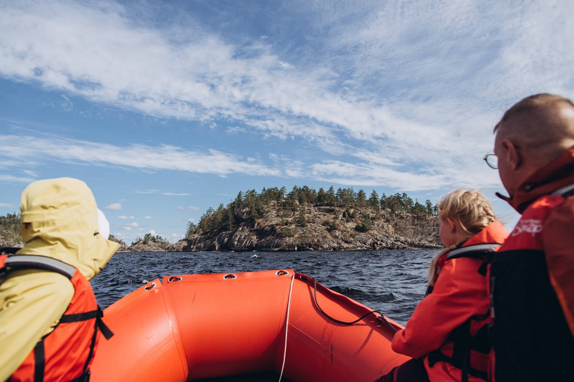 На обратном пути — водная прогулка по Ладожским шхерам: катер проходит среди узких проливов и скалистых островов с выходом к открытой Ладоге. Будет остановка на одном из островов, где можно прогуляться по каменным берегам и полюбоваться северными пейзажами.
