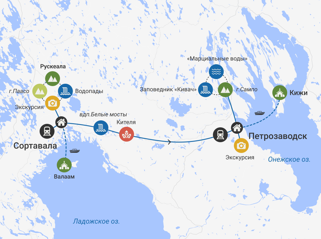 Путешествие завершится в 17:00 на вокзале Петрозаводска.