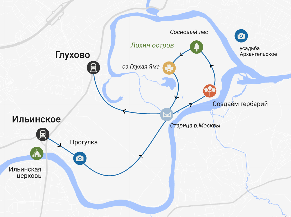 Маршрут начнётся в старинном селе Ильинское, откуда тропинка уведёт нас в поле и лес. Пойдём, вдыхая ароматы поздних цветов, замечая первые краски осени. Прогуляемся вдоль Москвы-реки, а в светлом сосновом бору найдём кустики спелой черники и брусники.