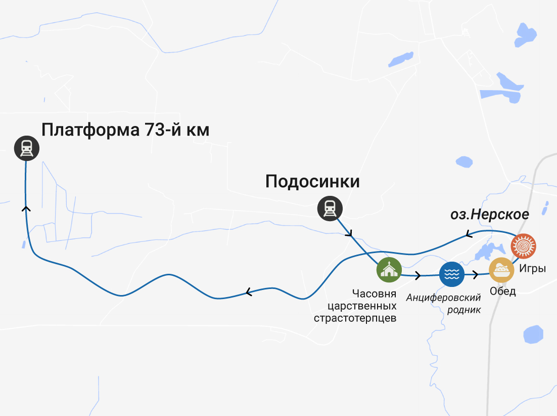 Наше велоприключение начнётся утром, стартуем от ж/д станции «Подосинки». Первая достопримечательность на маршруте — Часовня Царственных Страстотерпцев, скромное деревянное сооружение в окружении величественных сосен, а рядом — Анциферовский родник. Считается, что вода в нём богата ионами серебра и потому может не только освежить в жаркий день, но и подарить частичку здоровья ;)