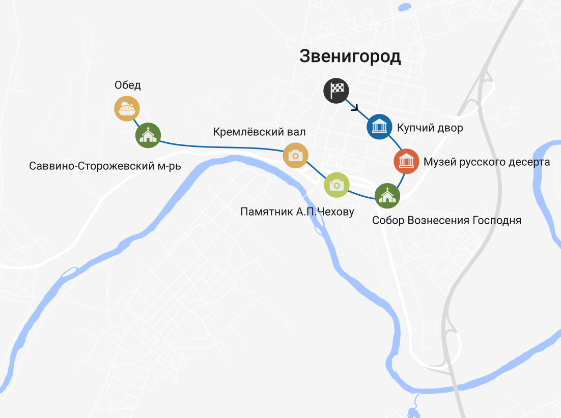 Мы встретимся утром в центре Звенигорода и отправимся на неспешную прогулку по улочкам, которые сохранили свой облик с XX века. Первым делом заглянем в Купчий Двор и Музей русского десерта, где для нас проведут мастер-класс по изготовлению расписных пряников.