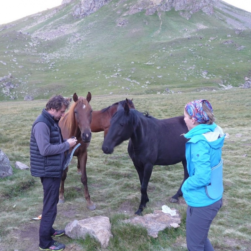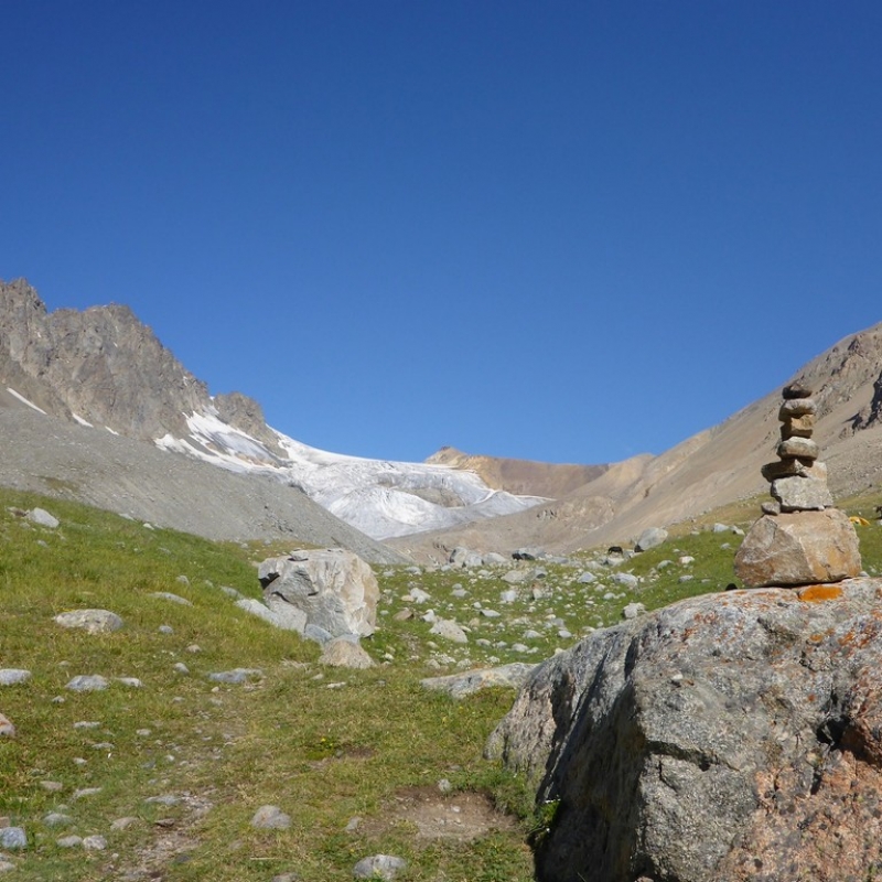 Сегодня наш путь будет проходить через сосновый лес вдоль реки Ирик Чат. Горный воздух, пропитанный запахом хвои, придаст сил и бодрости. Обед в живописном месте — у водопада рядом с домиком пастуха (кошем), на развилке ущелий Ирик и Ирик Чат. Желающие смогут снять усталость, искупавшись в горной реке. После обеда будьте готовы к подъёму, он потребует сил. От коша взберёмся вверх по петляющей тропе. Постепенно мы будем углубляться в ущелье, открывая суровую красоту гор — двуглавой вершины Ирик Чат (4 045 м) и перевала Советский воин (3 770 м). Лагерь разобьём на зелёной поляне с множеством ручейков, стекающих с гор.