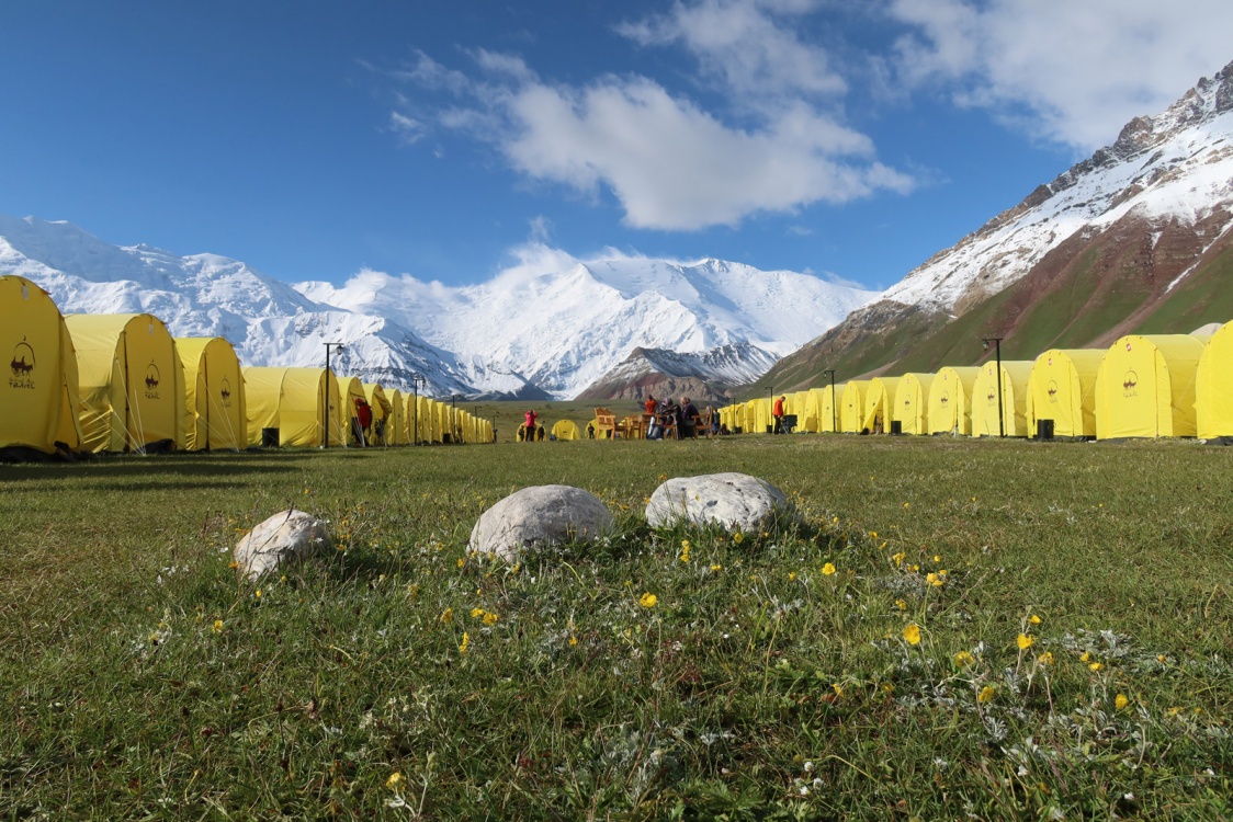 Лагерь, в котором вы будете жить, расположился прямо у подножия пика Ленина. Вокруг этой могучей заснеженной вершины открываются потрясающие пейзажи, а на склонах сияют ледники.