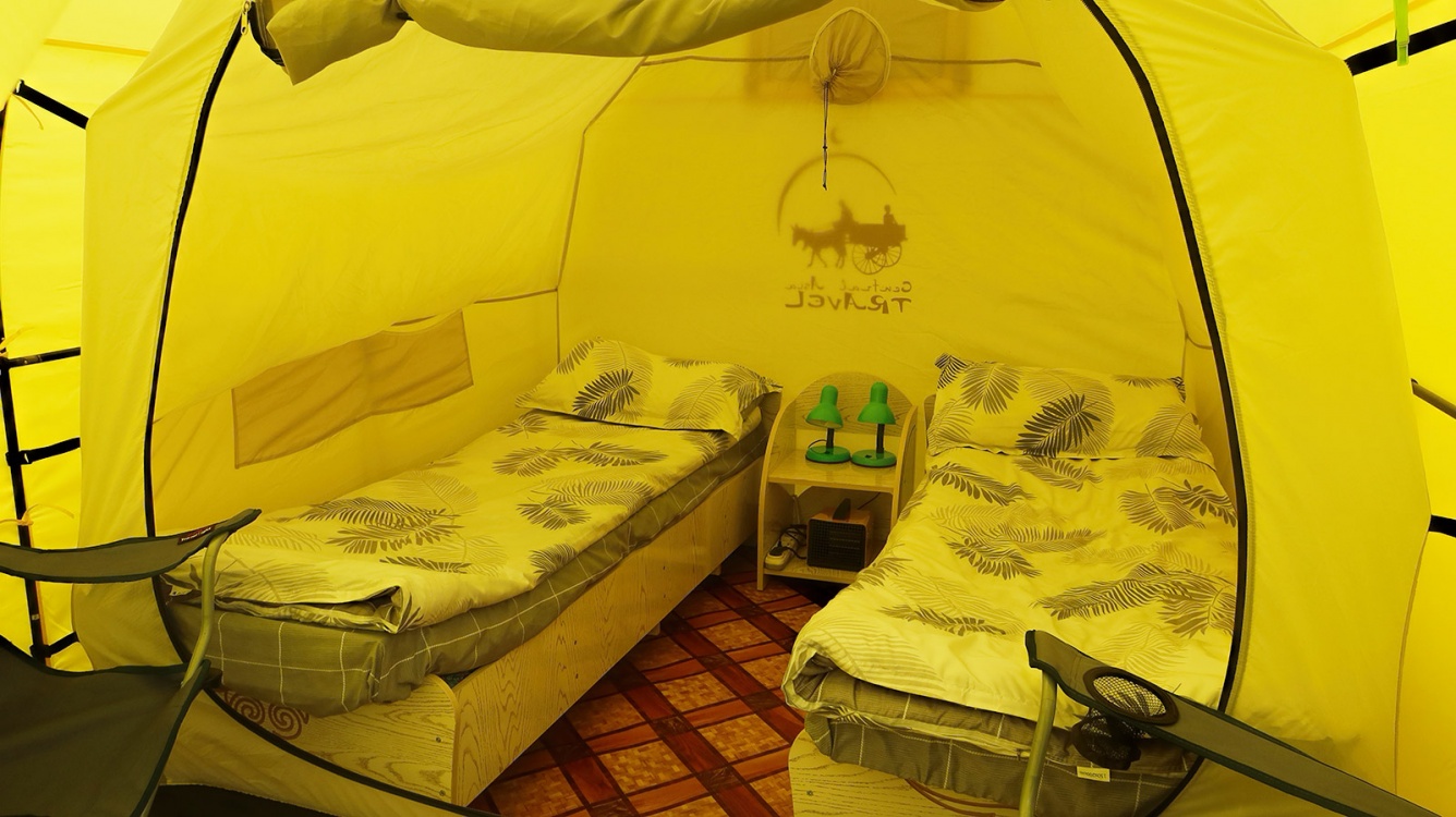 И важное дополнение: вас ждёт походный, но комфортный быт. Жить будете в обустроенном лагере со стационарными палатками, кроватями, душевыми, туалетом и электричеством. А в местных юртах-столовых вам будут подавать разнообразное горячее трехразовое питание от профессиональных поваров.