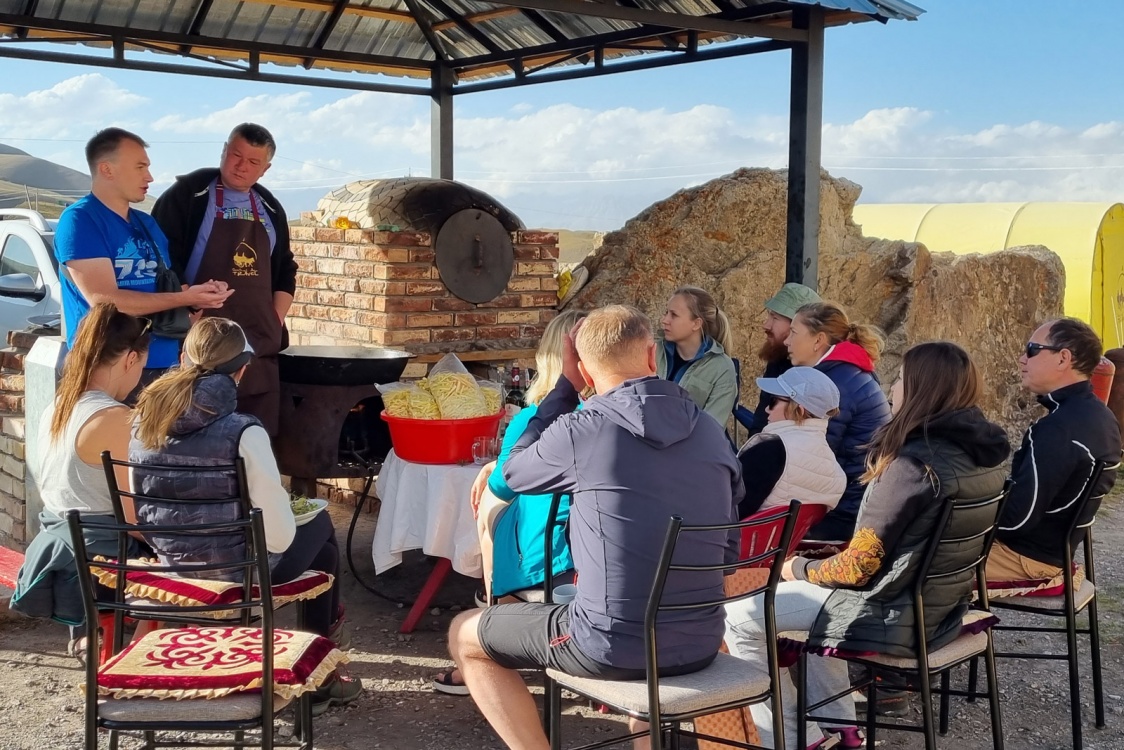 В первой половине дня вы примете участие в кулинарном мастер-классе и научитесь готовить настоящий узгенский плов! Он готовится из риса уникального сорта, который произрастает только в одном регионе в Киргизии. Профессиональный повар поделится с вами другими секретами идеального блюда, которое вы приготовите вместе, а на обеде обязательно его попробуете.
