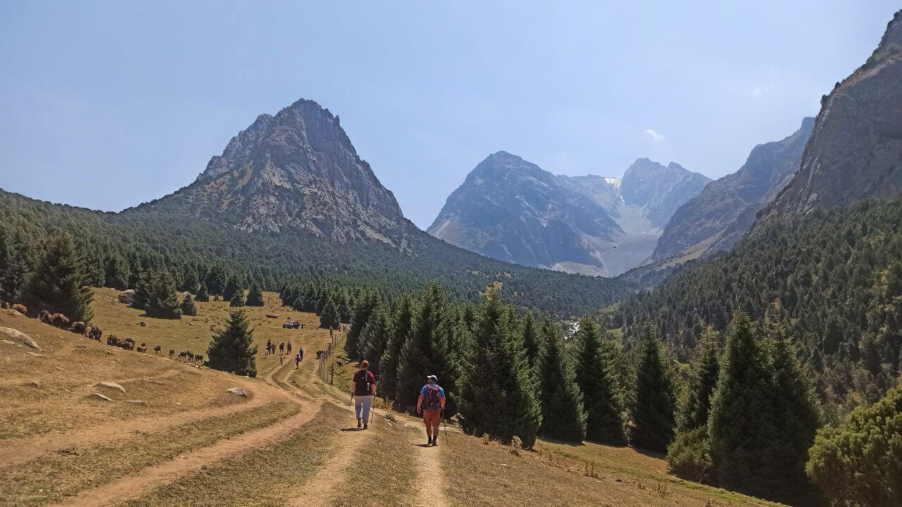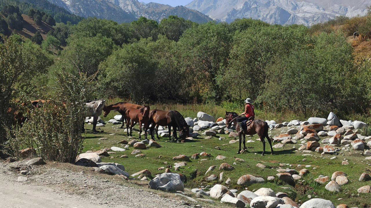 Ваше знакомство с природой Киргизии начнётся сегодня с национального парка «Кыргыз-Ата», раскинувшегося в долине одноимённой реки на склонах Алайского хребта. Вас ждёт несложная прогулка среди живописных пейзажей, а потом вы заглянете в лагерь кочевников, понаблюдаете, как они организуют свой быт, пообедаете в одной из юрт и попробуете кумыс. Желающие смогут покататься на лошадях.