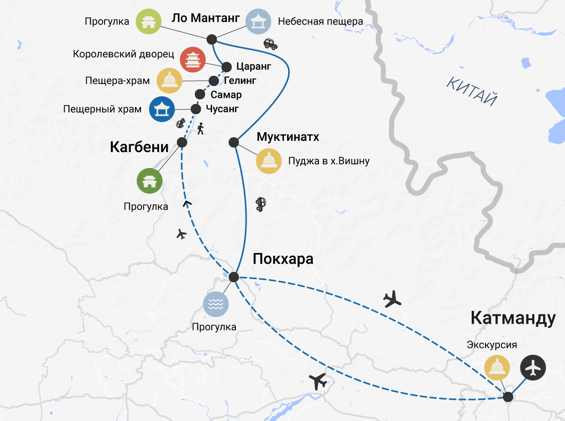 В загадочном Верхнем Мустанге мы увидим пещерные поселения, длинные молитвенные стены, древние монастыри, белоснежные ступы, яркие вереницы молитвенных флагов и всё это –на фоне величественных Гималаев.