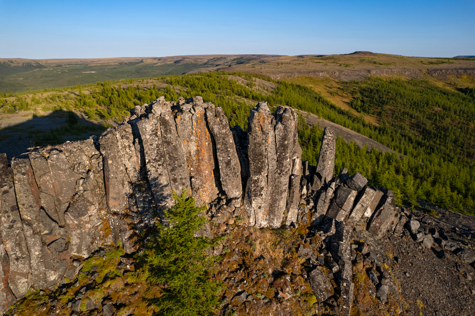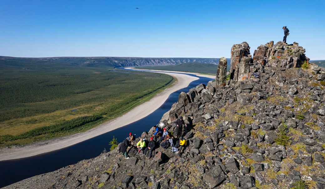 Сегодня вам предстоит совершить восхождение на высотную точку плато Анабар — пожалуй, самую живописную и атмосферную локацию всего маршрута. В пути проведёте практически весь день и вернётесь в лагерь только к ужину. Но все усилия не будут напрасны! Вы пройдёте по одному из самых диких и отдалённых мест России, где по горным породам под ногами можно изучать историю нашей планеты. В пути вас будут сопровождать потрясающие виды на бескрайние просторы северной тайги, реку Котуй внизу и далёкие хребты. Обед устроите прямо в горах.