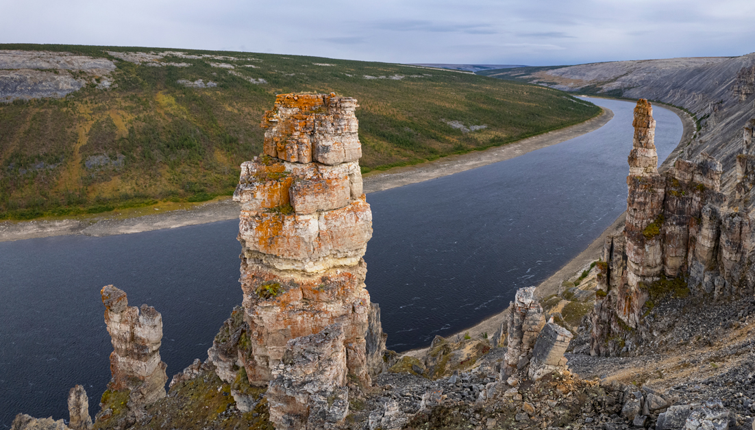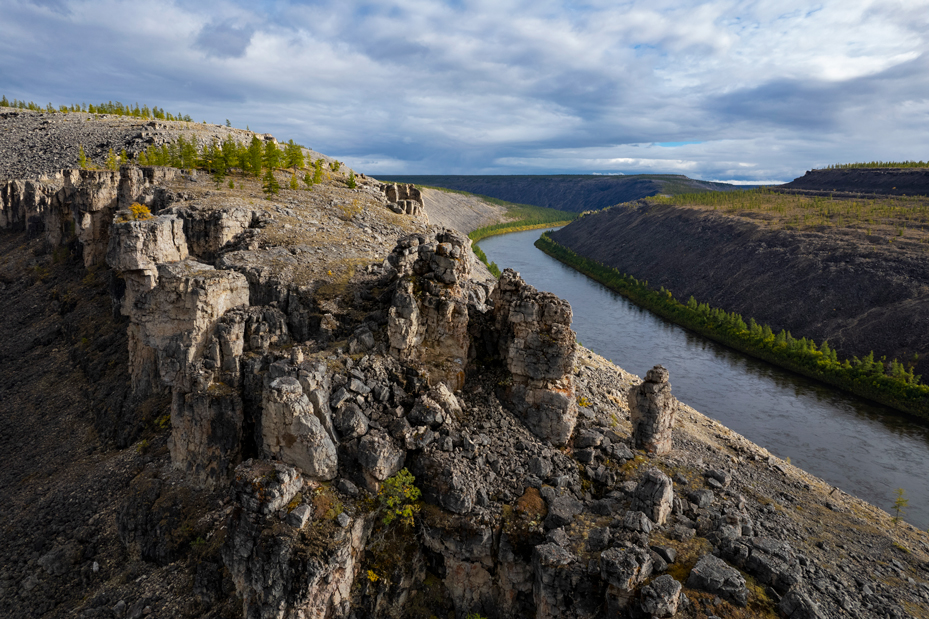 Плато Анабар на Таймыре — это настоящий край света: здесь нет мобильной связи, нет дорог и населённых пунктов на сотни километров вокруг. Только бескрайняя дикая природа, доломитовые скалы, космические ландшафты и абсолютная тишина. Оказавшись в таком месте, чувствуешь себя первооткрывателем! Именно за этим сюда и едут путешественники.