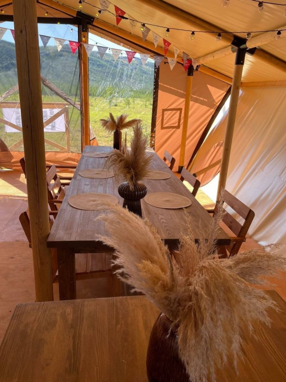 После треккинга вернётесь в лагерь, где будет ждать сытный обед. Вторую половину дня вы сможете провести так, как вам захочется: погреться в жаркой бане, прогуляться по лагерю или просто отдохнуть в шатрах.
