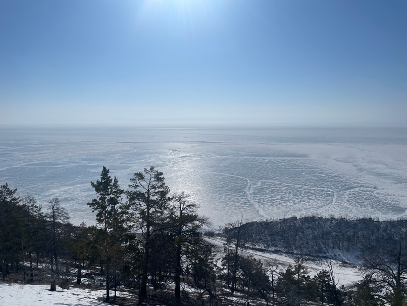 Мы оставим вещи у хижины, налегке прогуляемся по берегу и сверху полюбуемся видом на Байкал. Желающие смогут покататься на коньках.