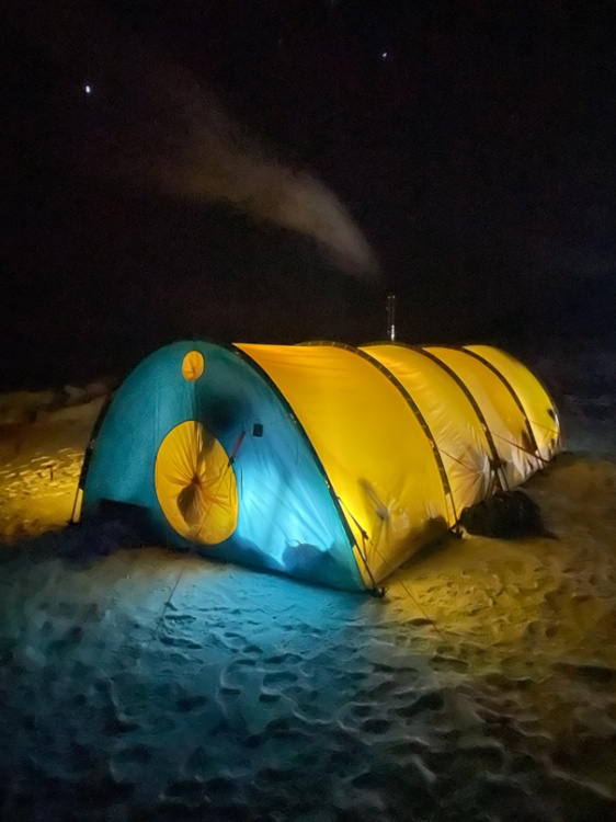 Мы выдадим всё снаряжение, в том числе личное (спальники, ледоступы, сани-волокуши, трек.палки). До и после похода переночуем в уютном гостевом доме, а на активной части маршрута будем спать в многоместной палатке, которая отапливается печкой до +18-20 °С.
