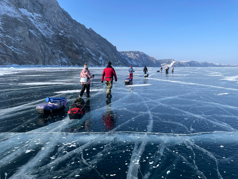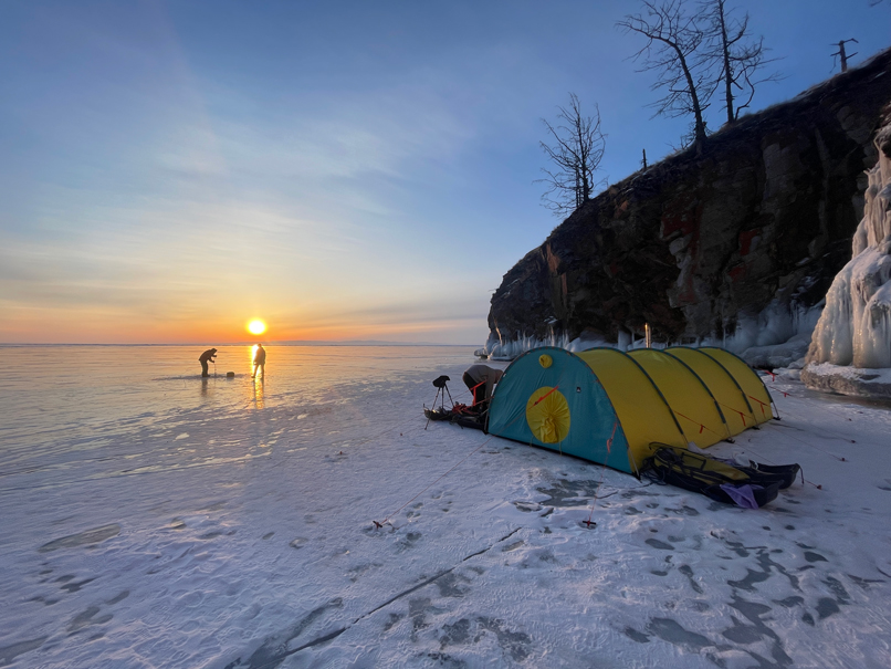 Отметим, что наши приключения пройдут в период с середины февраля до середины марта, когда лёд на озере достигает наибольшей толщины – от 1 до 2 метров, а значит, по нему безопасно ходить, ездить и жить в палатках.