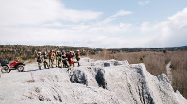 Вы встретитесь с участниками и гидами на ж/д вокзале Сортавалы (подробнее в разделе «Место и время встречи»), вместе заедете позавтракать в кафе. Затем на автомобиле доберётесь к началу маршрута на квадроциклах. Для вас проведут инструктаж, подберут экипировку и — в путь!