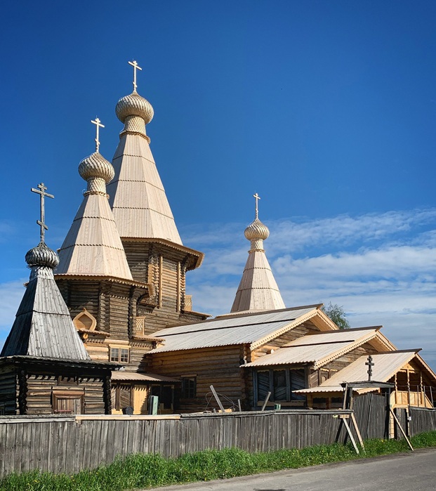 На причале вас встретит гид и вместе с ним вы поспешите увидеть Кижский архитектурный ансамбль, включённый в список Всемирного наследия ЮНЕСКО. Рассмотрите ту самую Церковь Преображения Господня, построенную в 1714 году «без единого гвоздя». Увидите и другую, не менее красивую, церковь Покрова Богородицы и деревянные домики неподалёку.