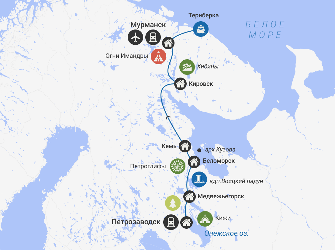 Приглашаем в большую автоэкспедицию по Карелии и Мурманской области! Мы встретимся в Петрозаводске, оттуда отправимся на север по трассе М-18 «Кола» и в финале доберёмся до самого берега Ледовитого океана. В пути изучим наиболее интересные места Карелии и Кольского полуострова, познакомимся с историей этих северных регионов, увидим классные природные локации и достопримечательности городов, распробуем местную кухню.