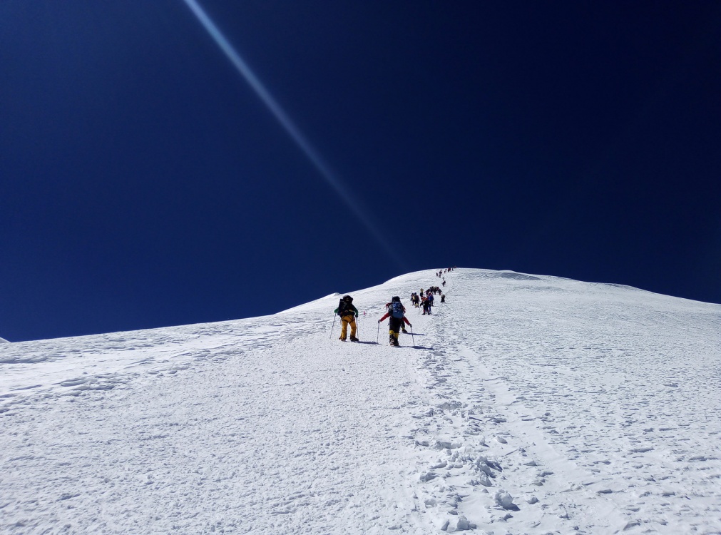 Но из-за большой высоты вам потребуется хорошая физическая форма и выносливость. Ещё на маршруте много ледников и трещин, поэтому на некоторых участках вы будете перемещаться в кошках и связках. Всему необходимому вас обучат прямо во время тура.