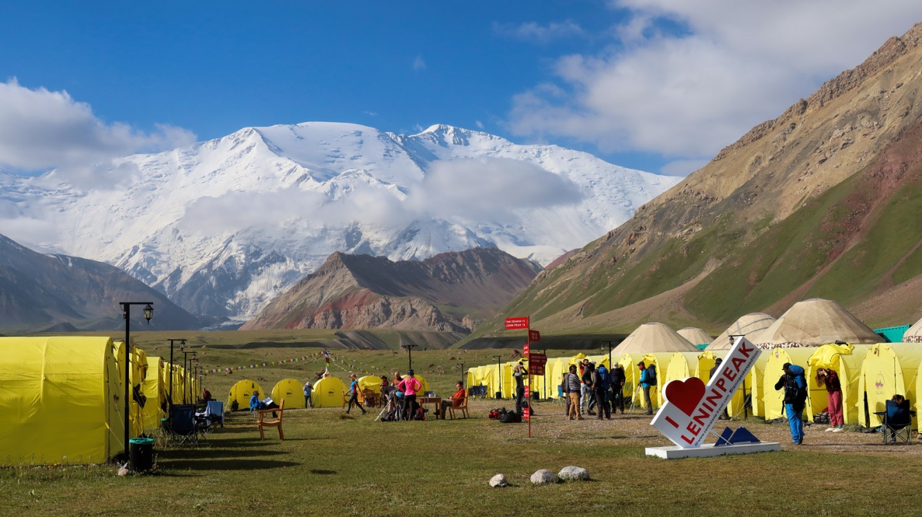 Лагерь, в котором вы будете жить, расположился прямо у подножия пика Ленина. Вокруг этой могучей заснеженной вершины открываются потрясающие пейзажи, а на склонах сияют ледники.