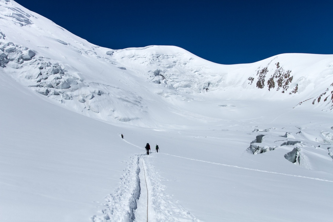 Отсюда вас ждёт заключительный подъём к «Лагерю 2». Здесь также нужно будет идти в связках из-за большого количества трещин, как открытых, так и закрытых.