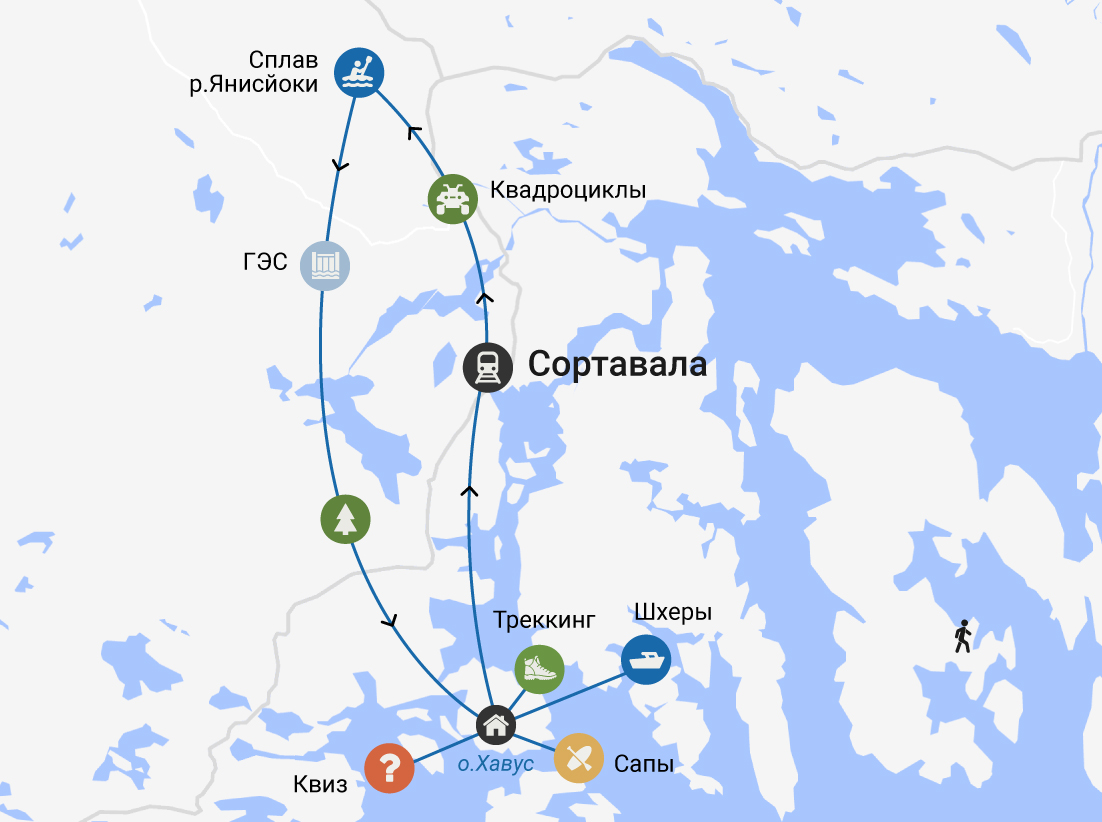 После сытного обеда вы отправитесь в треккинг через весь остров. Будете гулять по северному лесу, с пушистыми мхами, огромными елями и соснами. В пути встретите разные горные породы и подниметесь на скалу Хауккариутта, откуда полюбуетесь видом на Ладожские шхеры. После прогулки желающие смогут погреться в бане-фурако с видом на Ладожское озеро или в жаркой русской бане (за доп.плату).