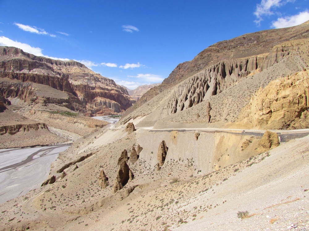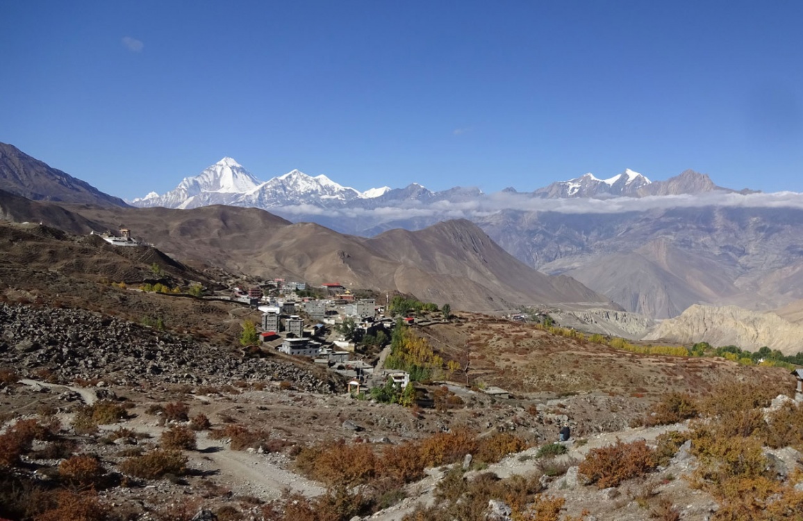 Рано утром на джипах отправимся в Джомсом, административный центр региона Мустанг. Мы проедем по глубокому ущелью между двумя красавцами-восьмитысячниками Аннапурна и Дхаулагири. Нас ждёт красивейший маршрут мимо водопадов и крохотных деревушек, которые приютились на склонах гор, с панорамными видами на снежные пики.