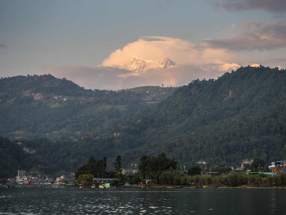 После завтрака в отеле уезжаем на микроавтобусе в Покхару. Это второй по величине город Непала и местный курорт. Городок расположен на берегу озера Фева в окружении зелёных холмов, за которыми виднеются величественные снежные вершины Большого Гималайского хребта.