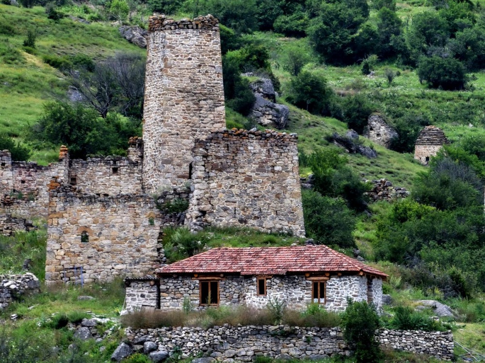 Добро пожаловать в страну боевых и родовых башен — Ингушетию! Здесь посмотрим средневековые башни Вовнушки в Таргимской котловине. Удивительно то, что башни построены без фундамента. Каменные великаны поддерживаются только нижними камнями. Вовнушки идеально вписаны в природный ландшафт и выглядят как естественное продолжение скал.