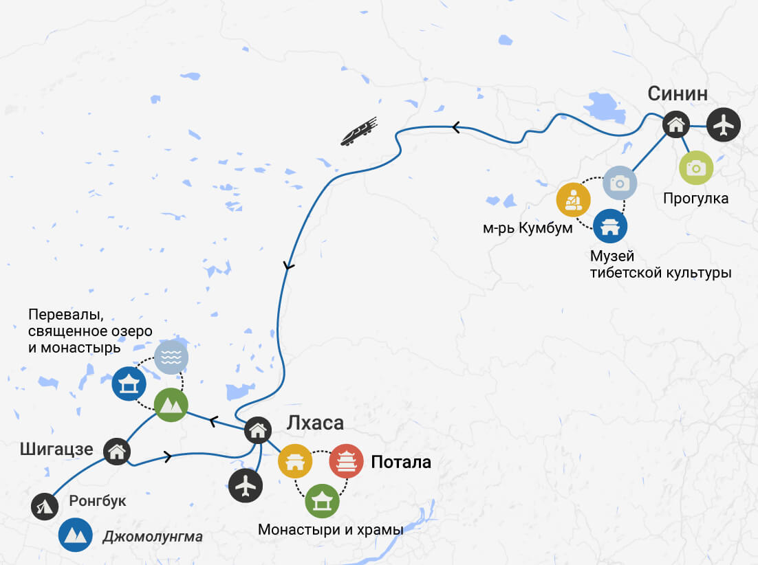 У нас будет возможность увидеть настоящую жизнь нагорья и почувствовать масштаб этих мест. Мы начнём в Синине, проедем по легендарной высокогорной железной дороге, погрузимся в историю великих монастырей и дворцов, и, наконец, окажемся у подножия Эвереста. Каждый день мы будем жить в 3-4* гостиницах, за исключением одной ночи, которую проведём в современном вагоне поезда по пути к Эвересту.