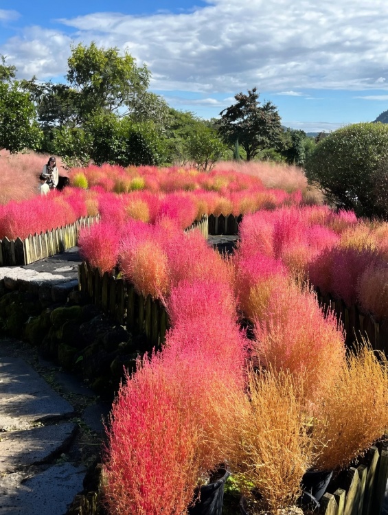 Затем поднимемся на живописные сопки с потрясающими видами на остров. По пути полюбуемся плантациями цитрусовых — символа Чеджу. Обязательно сделаем фото на полях розовой травы.