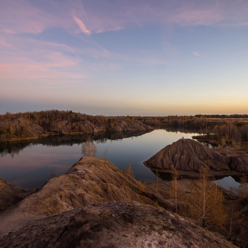 После завтрака прогуляемся на окраину болота, летом здесь можно наблюдать густые заросли камышей и грациозных цаплей. Затем отправимся к карстовым озёрам удивительного бирюзового цвета: дело в том, что в воде содержатся примеси кальция и магния. Вдоволь налюбуемся пейзажами, поднимемся на высокие угольные отвалы, которые образуют интересный волнистый ландшафт, а потом пройдём секретными тропами к панорамным точкам, с которых открываются невероятные виды на карьеры.
