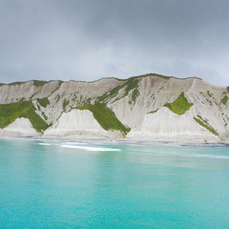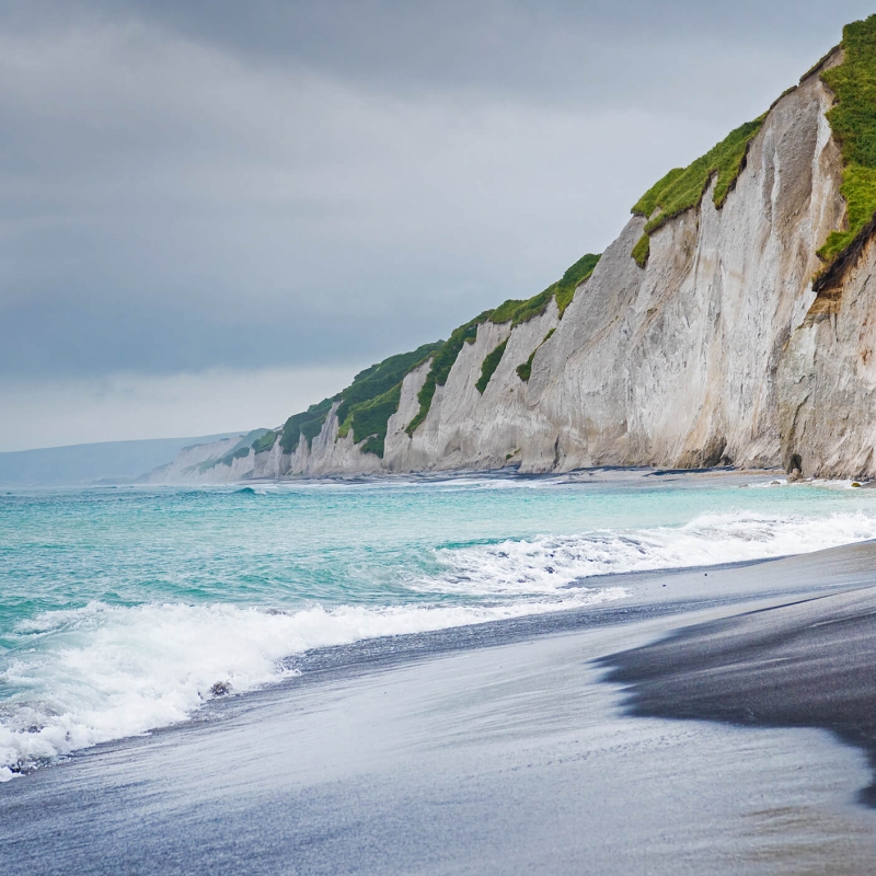 Сегодня вам предстоит побывать на крупнейшем острове среди всех Курил — Итурупе. Вы отправитесь гулять к Белым скалам, известным своими хребтами необычных форм пепельного цвета. Скалы состоят из довольно гибких пород, и ландшафт местности постоянно меняется, а природа использует его как материал для своего творчества. Вы увидите множество красивых каньонов, гротов и скал. Дополняют картину удивительный тёмно-серый песок, лазурная вода океана и грозные вулканы на горизонте.