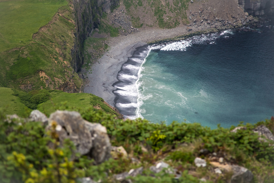 Если повезёт с погодой, вы сможете увидеть Головнинский клиф*. Это огромная стена с водопадами на самом берегу океана, которая впечатляет своим рельефом и размерами.