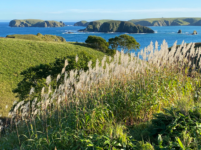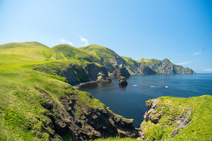 Шикотан удивит цветущими мягкими луговыми склонами, бамбуком, можжевельниками и высокими скалистыми берегами. А Кунашир ‒ своей необузданной энергией с кипящими родниками, фумаролами и ещё неостывшими вулканами.